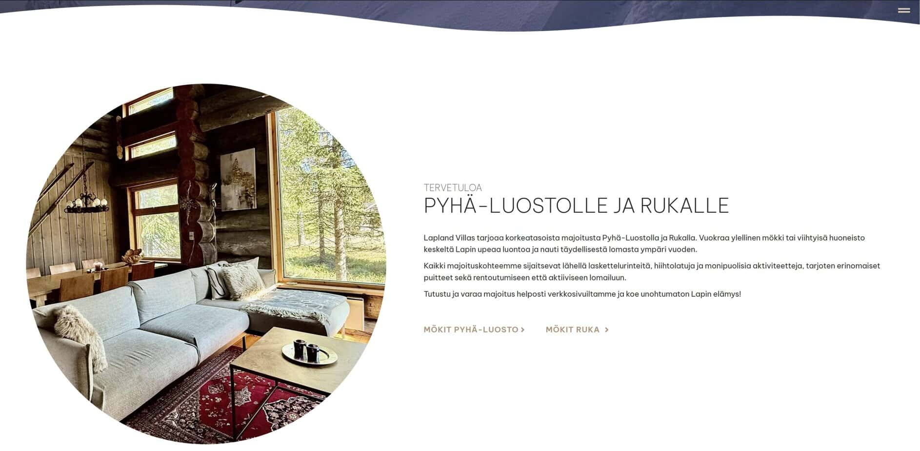 Toteutimme majoitustoimintaa mm. Rukalla ja Pyhällä harjoittavalle asiakkaallemme, Lapland Villasille, uudet verkkosivut ja logon. Verkkosivuissa toteutimme rakenteen ja ulkoasun.