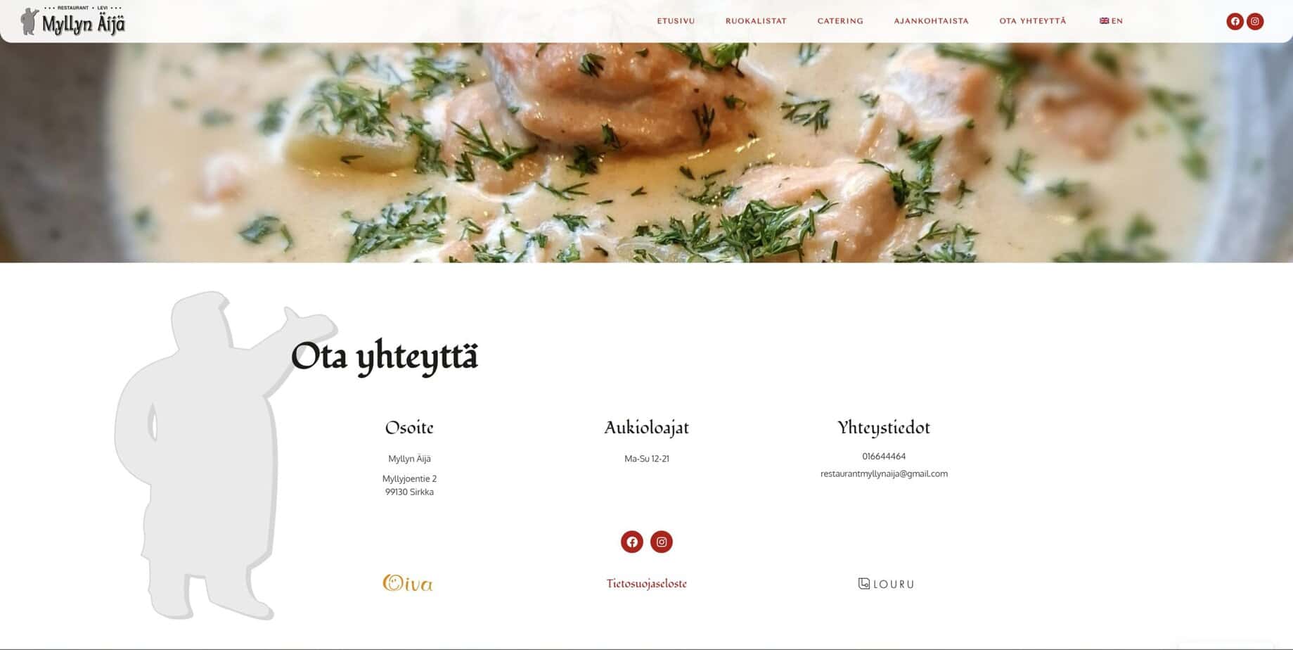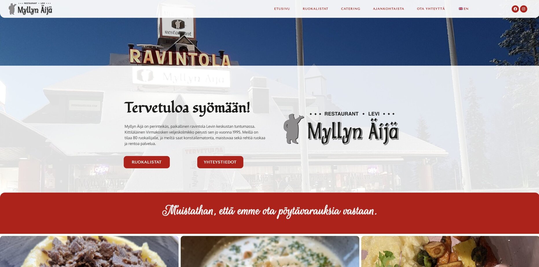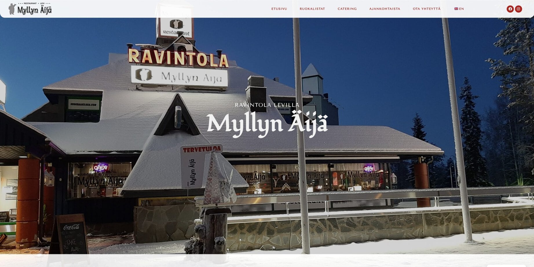 Toteutimme ruokaa tarjoavalle asiakkaalle Levillä, Myllyn Äijä ravintolalle, uudet verkkosivut. Verkkosivuissa suunnittelimme ulkoasun ja rakensimme sivuston.