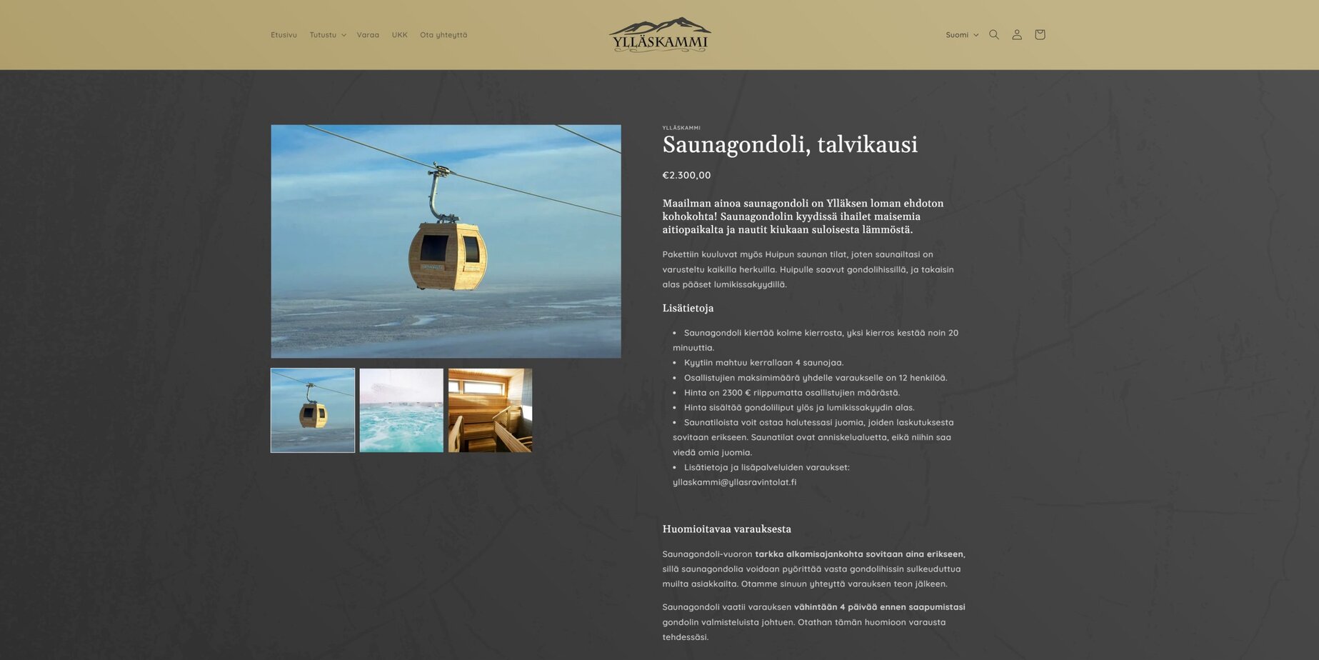 Teimme ravintola-alan asiakkaallemme Ylläksellä, Ylläskammille, verkkokaupan, josta voi tilata mm. Revontuli-illallisen ja nauttia Ravintola Gondolin herkkuja. Ravintola Gondolille teimme erikseen logon.